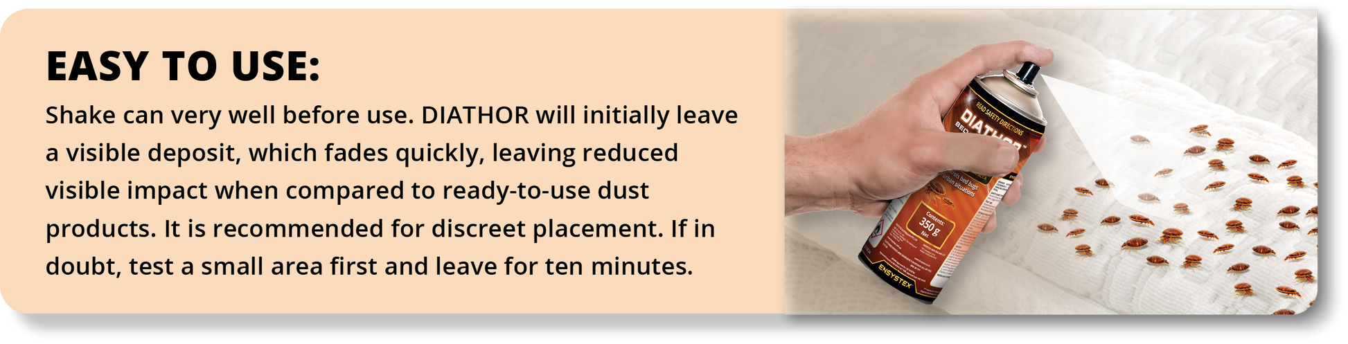 DIATHOR kills bed bugs via rapid dehydration caused by breaking down the bug's waterproof exterior.