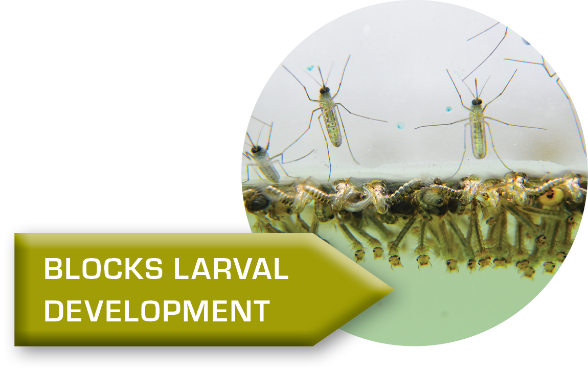- Prevents Larvae developing into adults